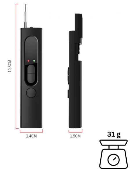 Cet appareil détecte les ondes émises par les micros espions lorsque ceux-ci sont en fonctionnement. Ce détecteur de micro GSM dispose d'un mode son ainsi que d'un mode vibreur pour une détection en toute tranquillité sans éveiller les soupçons.